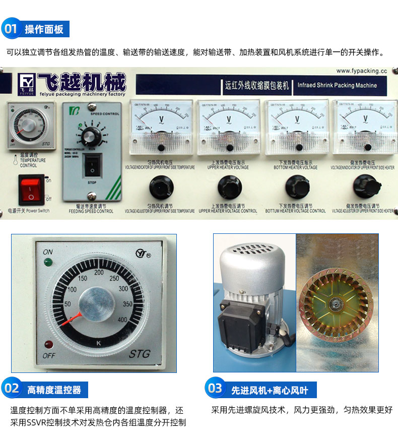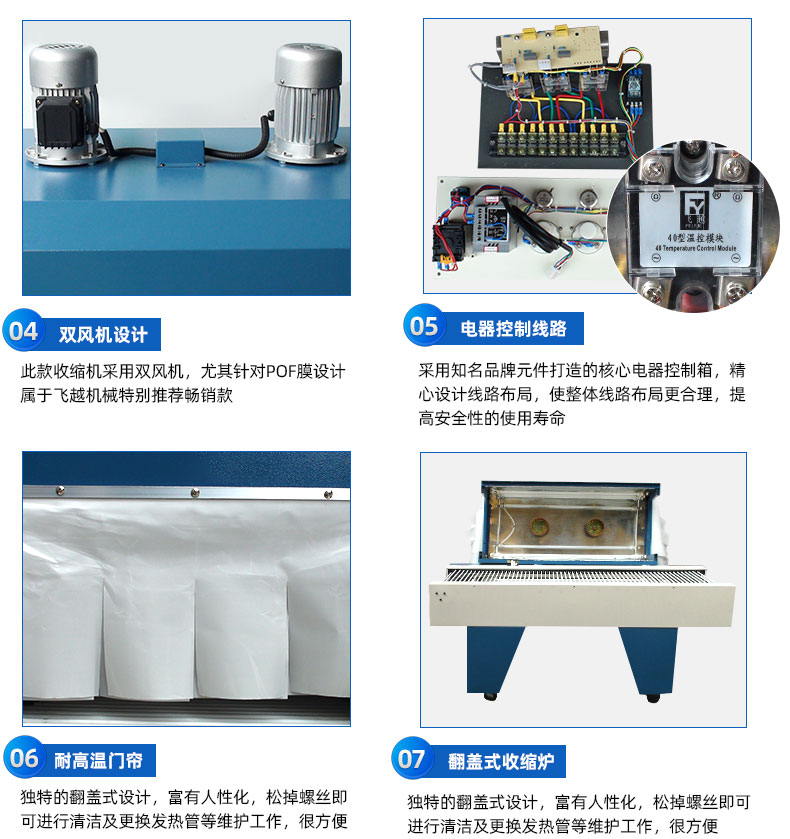 3、采用遠(yuǎn)紅外線加熱管,將熱量直接傳送到收縮膜表面,收縮效率特佳