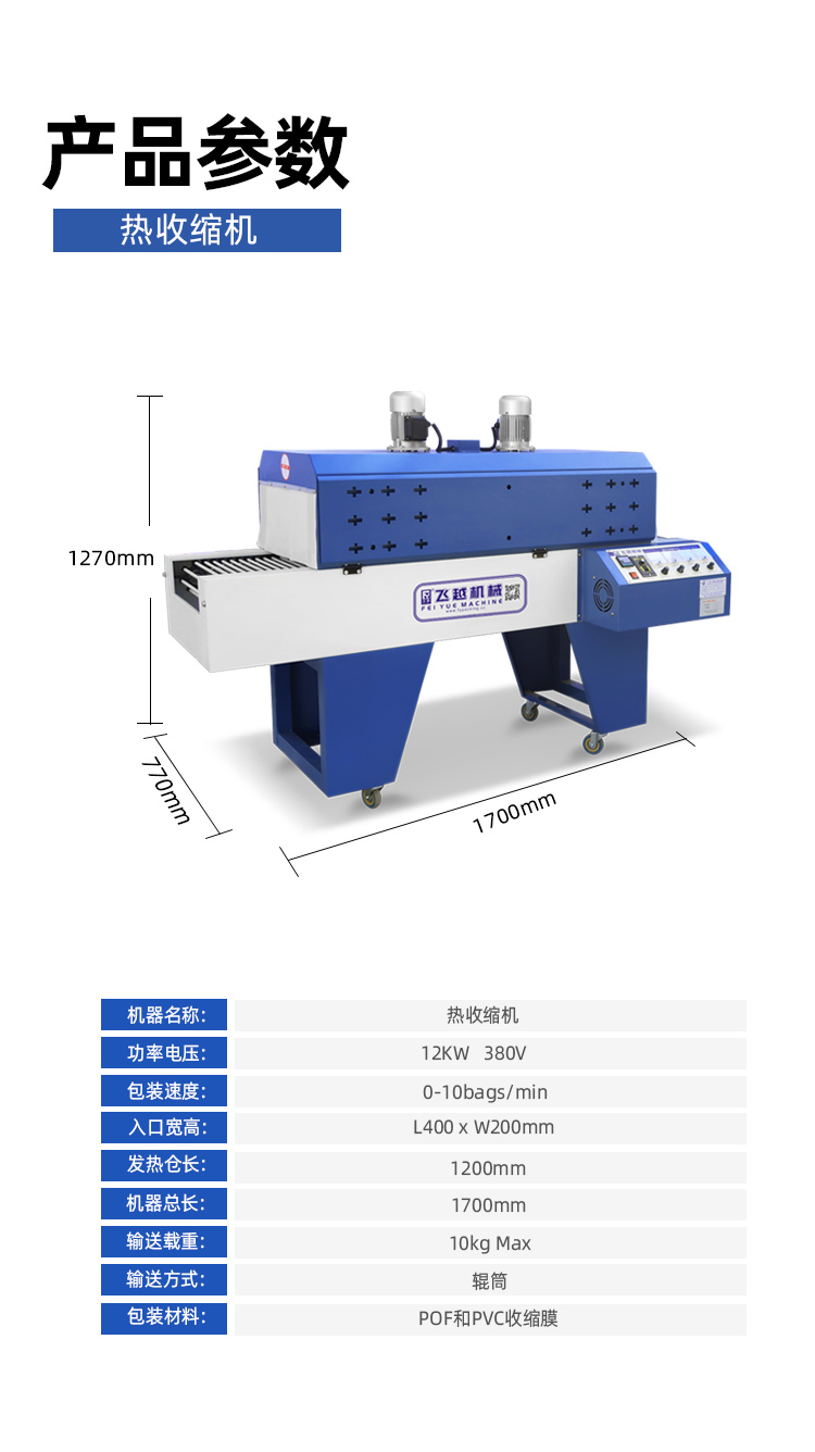10、自動送料裝置,放到輸送帶的產(chǎn)品,自動進行套膜封切,并輸出到收縮機