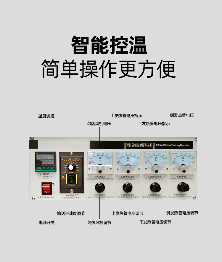 3、采用遠紅外線加熱管,將熱量直接傳送到收縮膜表面,收縮效率特佳