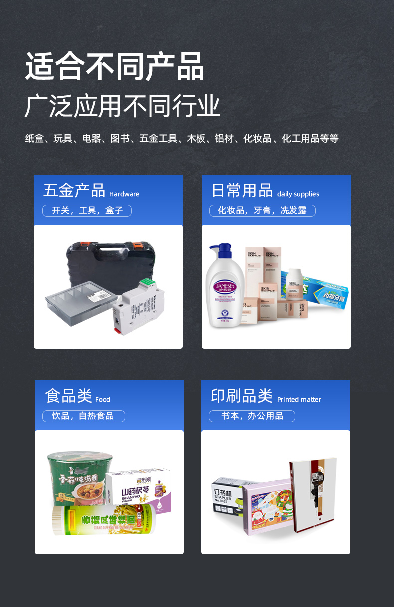 廣泛應(yīng)用于紙盒、玩具、電子、電器、文具、圖書、唱片、五金工具、地板、木板、建材、鋁材、日用品、藥品、飲料、化妝品、化工用品、工藝品、標(biāo)簽等商品的熱收縮包裝。