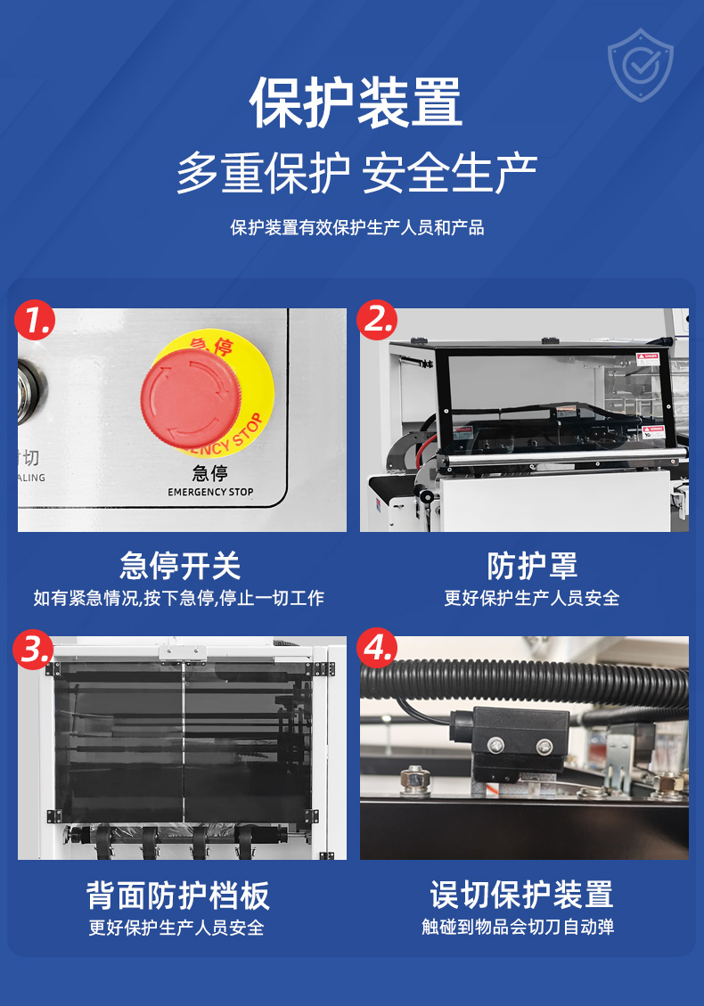 5、產(chǎn)品誤切保護,切刀碰到產(chǎn)品立即停止封切自動彈起,防止誤切,保護切刀、產(chǎn)品和人